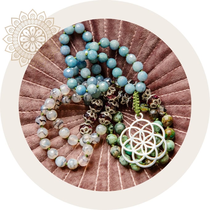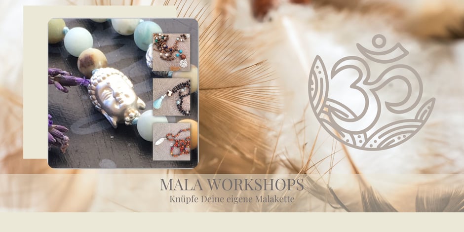 Bei deinem ca. 6h Workshop begleite ich dich bei der Entstehung deiner ganz persönlichen Mala. Nach der Einleitung und Vorbereitung wählst du deine Perlen aus einer Vielzahl von Holz-, Halbedelstein- und Silberperlen. Danach üben wir das Knüpfen und du wirst sehen wie deine Mala durch deine Geduld und deine Kreativität entsteht. Fühle in dich hinein, wie dir die Mala gut tut. Danach kannst du die Mala nutzen zum Mantra rezitieren, meditieren, bei Yoga-Übungen oder als Schmuckkette mit seelenheilender Wirkung im Alltag.