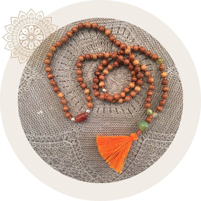 Malas werden im Buddhismus zur Meditation verwendet, um Körper und Geist zur Ruhe zu bringen, damit die Seele wirken kann. Die Mala besteht aus 108 Perlen, welche in vier Bereiche zu je 27 Perlen aufgeteilt werden können. Den Abschluss bildet die sogenannte Guru Perle. Diese Ausgangsperle ist wichtig, damit du bei der Meditation weisst, wann du beim Rezitieren deines Mantras alle 108 Perlen durchlaufen hast. Die Guru Perle kann aber auch durch ein Amulette oder einen Anhänger ergänzt werden. Traditionell wird eine Mala geknüpft und zum Abschluss das Garn mit einem Tassle verbunden.